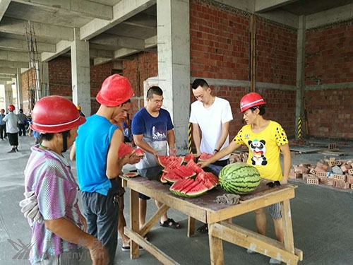 烈日炎炎送清涼,情意暖暖感人心。7月26日上午,營山分公司副經(jīng)理金杰帶領(lǐng)辦公室相關(guān)工作人員代表營山分公司來到營山縣樞紐站建設(shè)工地看望慰問一線工人,給在項(xiàng)目工地一線施工的工人們送去了風(fēng)油精、藿香正氣水、夏桑菊等防暑藥品,還有甘甜可口的大西瓜。金副經(jīng)理為項(xiàng)目管理人員和施工人員講解了防暑注意事項(xiàng),要求項(xiàng)目部一定要做好員工勞動(dòng)保護(hù)和安全文明施工工作。同時(shí),對工人們?yōu)榻ㄔO(shè)項(xiàng)目工程所付出的辛勤勞動(dòng)和做出的貢獻(xiàn)表示衷心感謝,提出“把有利健康、保證安全放在第一位”,并且叮囑相關(guān)負(fù)責(zé)人,高溫酷暑期間,要合理安排工作時(shí)間。此次“送清涼”活動(dòng)極大的鼓舞了戰(zhàn)斗在一線的施工人員的士氣,同時(shí)為項(xiàng)目建設(shè)安全生產(chǎn)提供了有效的保障。工人們表示不管天氣多么炎熱,也要克服困難按期完成施工任務(wù)。 (陳弘 何芳)