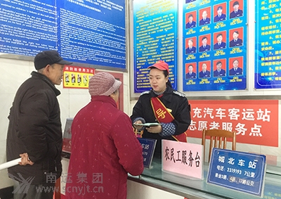1月21日,2019年春運(yùn)大幕正式拉開。一年一度的學(xué)生寒假流和農(nóng)民工返鄉(xiāng)流接踵而至。為做好春運(yùn)服務(wù)工作,南充汽車客運(yùn)站多措并舉,為廣大旅客特別是返鄉(xiāng)農(nóng)民工朋友創(chuàng)造條件,暢通回家路。 關(guān)愛農(nóng)民工,是黨中央、國(guó)務(wù)院提出的號(hào)召,春運(yùn)開始,奮戰(zhàn)在祖國(guó)經(jīng)濟(jì)建設(shè)各行各業(yè)的廣大農(nóng)民工朋友將帶著一年的收獲和疲憊,返回家鄉(xiāng)與家人團(tuán)聚。為在他們返鄉(xiāng)的路上,搭起愛心驛站,做好服務(wù)工作,車站在工作上添措施、從運(yùn)力上做調(diào)整,以保障農(nóng)民工朋友到站享受到貼心、便捷的服務(wù),以更快的時(shí)間踏上回家的行程。 首先在站務(wù)服務(wù)上,車站設(shè)立了專門的農(nóng)民工優(yōu)先售票窗口,農(nóng)民工服務(wù)臺(tái)、農(nóng)民工檢票進(jìn)站綠色通道,保障了農(nóng)民工進(jìn)站乘車的快捷、方便;其次是確定了20臺(tái)儲(chǔ)備運(yùn)力為農(nóng)民工運(yùn)送專車,在春運(yùn)高峰期,開行農(nóng)民工到達(dá)地集中的專門班車,如儀隴金城、馬鞍、立山、復(fù)興、蓬安、巴中、南江、通江、宜賓、資陽、樂至、蓬溪、大英、安岳等,為農(nóng)民工及時(shí)返鄉(xiāng)提供有力保障。 (李曉光 謝芳)