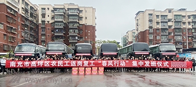 南充市高坪區(qū)農(nóng)民工返崗復(fù)工“春風(fēng)行動(dòng)” 集中發(fā)班儀式在高坪汽車客運(yùn)站舉行