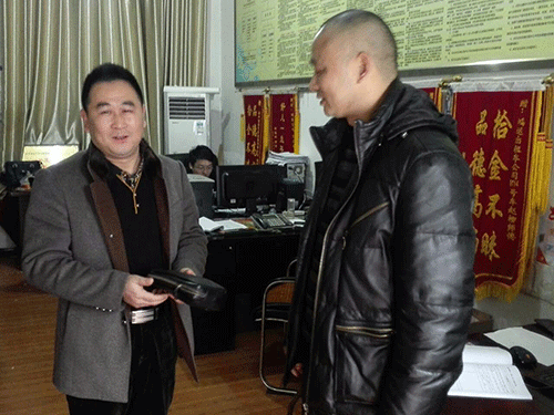 到公司后,李曉全副經(jīng)理與工作人員一起打開手包,通過清點,包內(nèi)裝有現(xiàn)金14000余元,銀行定期存單10萬元、銀行卡3張,火車票2張,身份證2個。為盡快找到失主,李曉全副經(jīng)理隨即向市110報警中心、市廣播電視臺求助。2月9日大年初二上午,通過市公安局七里派出所查戶籍終于找到了失主。