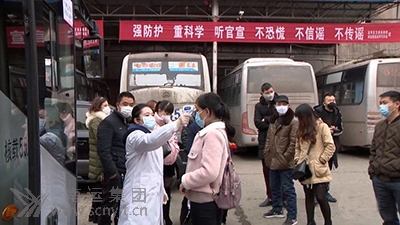 上車前醫(yī)護(hù)人員給每位乘客測(cè)量體溫