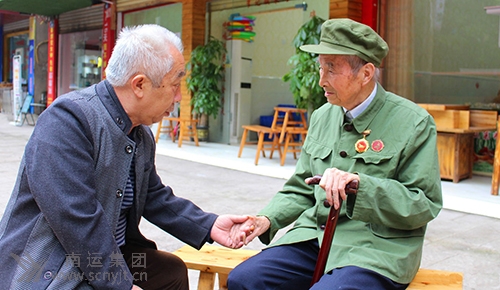 南運集團(tuán)高坪分公司退休職工夏則鳴(右一)和唐德民拉家常