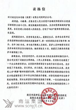 鄧迪還自費為社區(qū)各值守點位捐贈飲用礦泉水十余件,極大的彰顯了南運集團共產(chǎn)黨員在關(guān)鍵時刻、危難時刻奉獻社會的先鋒模范作用,社區(qū)大媽們翹起大拇指說:“你們南運人真棒!”8月27日,順慶區(qū)西山街道辦事處伍家埡社區(qū)居民委員會還給南運集團旅游分公司寄來了情真意切的《感謝信》。