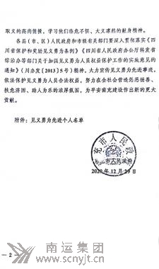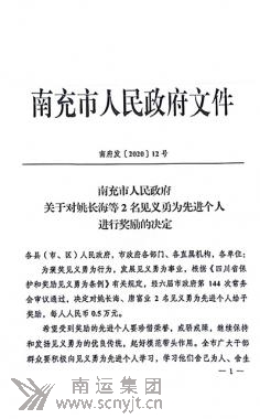 附:南充市人民政府《關于對姚長海等2名見義勇為先進個人進行獎勵的決定》(南府發(fā)〔2020〕12號)